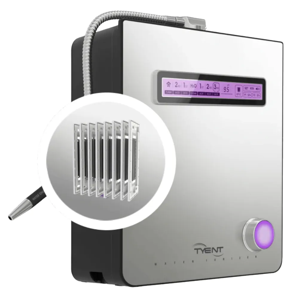 When Tyent engineers were looking to strike a balance between durability and ionization potential they discovered hybrid/mesh plates. The plates inside Tyent water ionizers are dipped in platinum for extra strength and contain mesh surfaces to increase surface area.